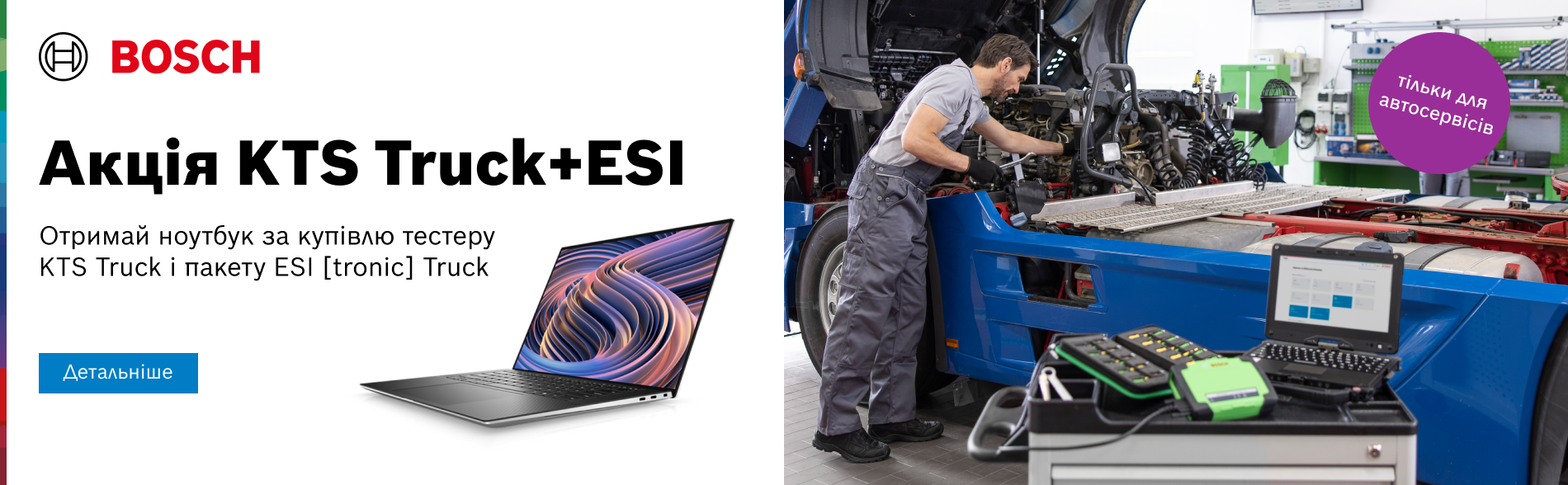 У період з 01.08.2025 по 31.12.2025 придбати у офіційного партнера Bosch: KTS Truck з пакетом [ESI]tronic Truck на 12 місяців.