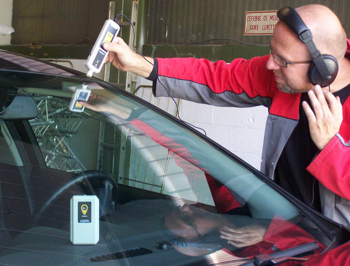 Пристрій складається з передавача та приймача, які працюють на певній ультразвуковій частоті, що дозволяє точно визначати негерметичні ділянки кузова, дверей, стекол та інших елементів автомобіля. Ультразвукові хвилі не проходять крізь скло та метал, що забезпечує високу точність локалізації джерела витоку.